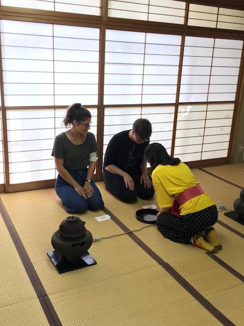 スペンサーはアメリカで茶道を経験したことがあると言っていましたが、ミミは初めての体験でした。茶道の様々な伝統的な所作を教えてもらい、袱紗も上手にたためたようです。