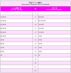 - 1月臨時バスダイヤ(Specified dates schedule for January)※運休日は1月1日(木)~4日、11日(日)、12日(月・祝)・17日(土)・18日(日)・25日(日)です。 ※1月は全便臨時ダイヤとなります。 ※1月24日(土)は、大学入学共通テストの再試験が行われる場合は、全便運休となります。