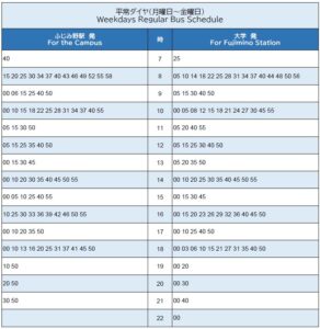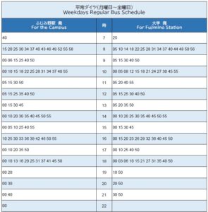 ふじみ野キャンパススクールバス時刻表