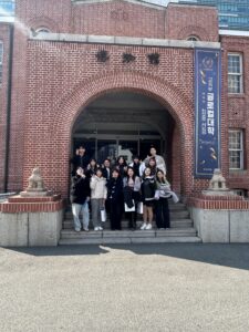地下鉄で移動して徒歩5分ほどで東亜大学ブミンキャンパスに到着します。早速、国際交流担当のシン先生とブライアン先生がお出迎えしてくれました。東亜大学は、韓国内でも学生数の多い総合大学です。「同座問道」という、師匠と弟子が一緒に座って道を問うことが設立の理念にあるそうです。本日は、今回の旅の最初のメインイベントとなる東亜大学の学生との交流会です。本学の学生たちは自分の探求トピックについてプレゼンを行い、東亜大学の学生たちからさまざまな意見をもらいました。新しい視点やアイデアに刺激を受け、次の訪問先・ソウルではさらに深掘りしていく予定です。楽しく学びながら広がっていくこの交流、これからの展開がますます楽しみです!