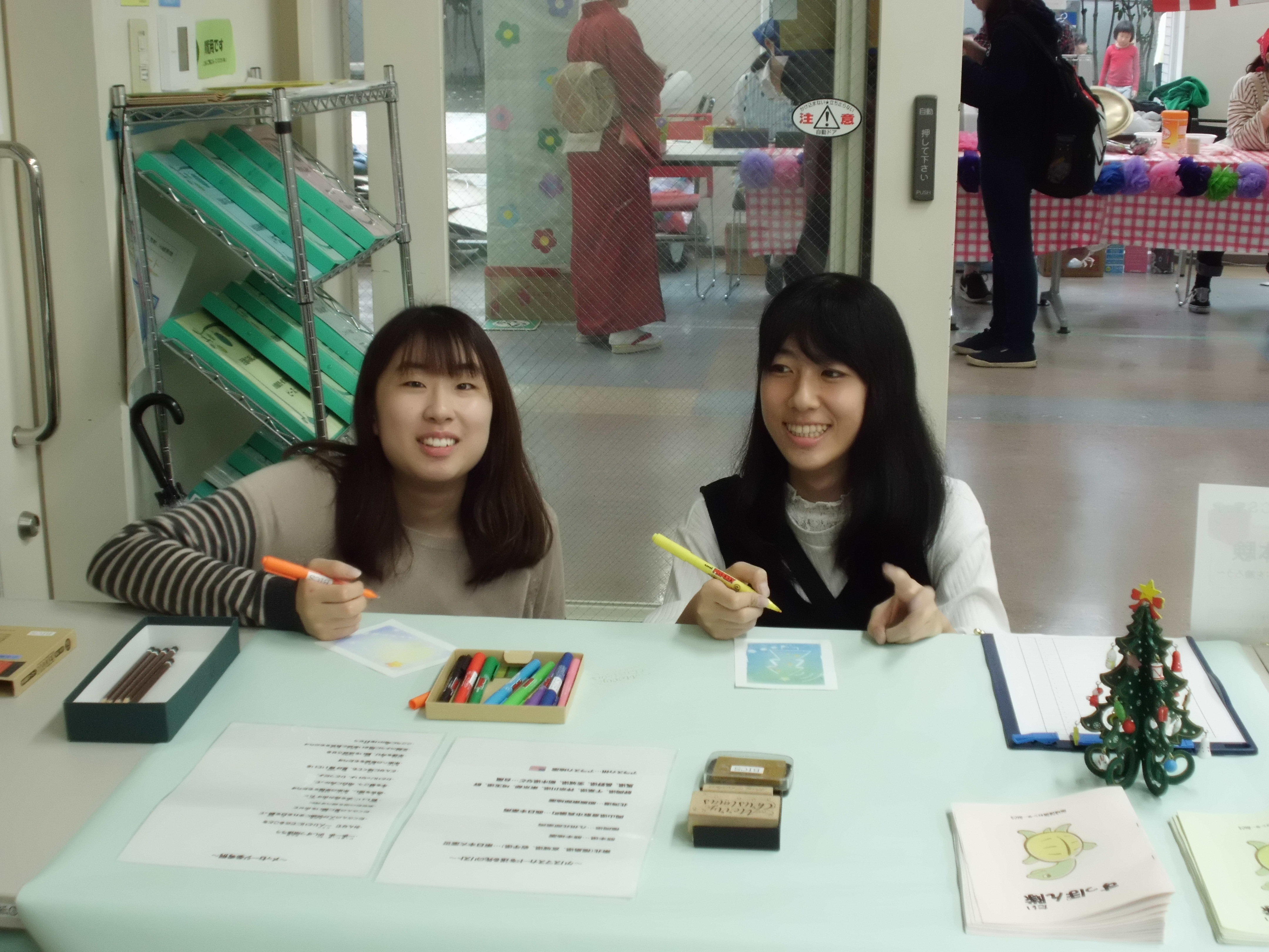 体験料は一回100円からの募金とし、短い時間でしたが2,250円が集まりました。カードに応援メッセージを書き、プロジェクトの主催者に送付して、東北、熊本、北海道と、今回の台風の被災地等に発送して頂く予定です。