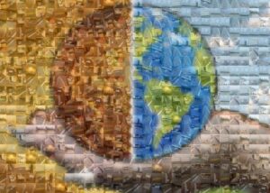 日常生活からくる環境汚染 ―モザイクアートを用いた環境問題― 日常の何気ない行動が環境汚染につながっていることを、モザイクアートという視覚表現を通して伝える作品である。道端のごみや使い捨て容器など、日常の断片を積み重ねて一つのイメージを構成することで、個人の小さな行動の集積が社会的課題を生み出している構造を可視化している。