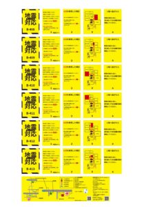 大学内で地震が発生した際の初期避難行動に焦点を当て、視覚情報を活用して直感的に理解できる実効性の高い防災マニュアルを制作した作品である。2011 年 3 月 11 日の東日本大震災の経験も踏まえ、情報を絞り込み、緊急時に冷静な判断と避難行動を促すデザインを目指している。