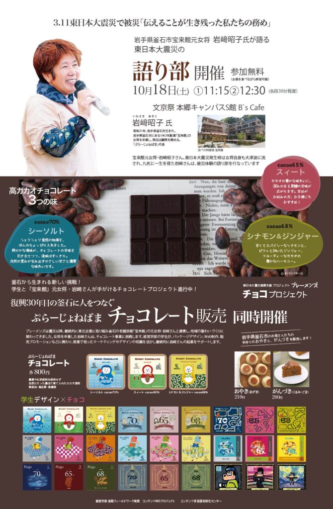 その第一歩として、学生がデザインしたパッケージとともに、文京祭にて岩﨑さんのチョコレートを販売いたします。