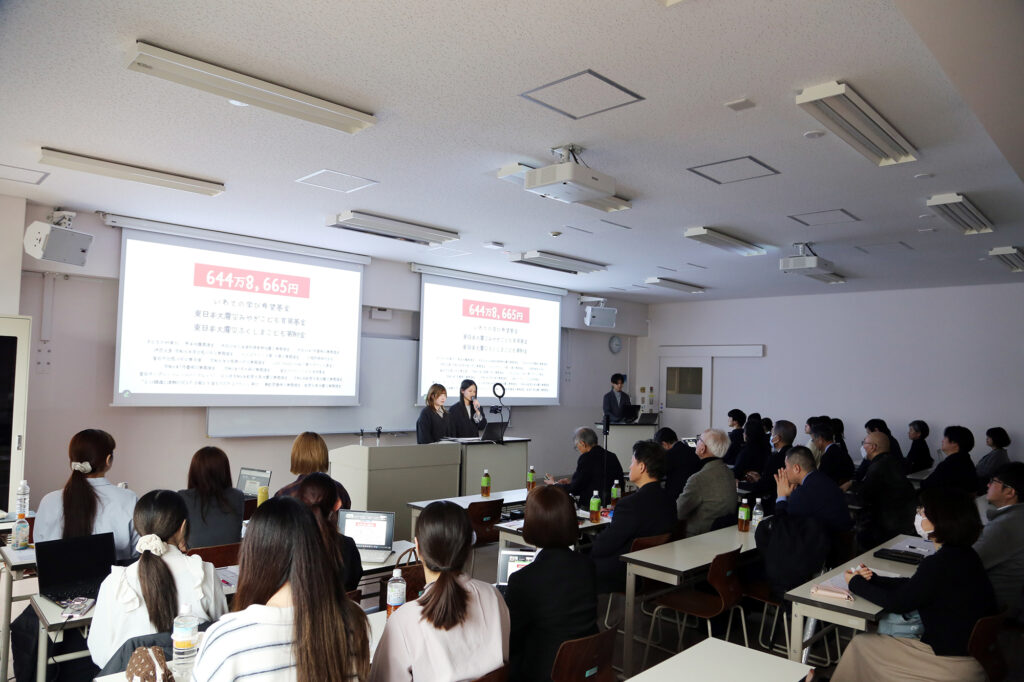 2026年2月25日(水)長期フィールドワーク コンテンツMDプロジェクト活動報告会が開催されました。一年間の活動を振り返り、教員、学生、企業、自治体の皆さまをお招きし、対面およびZoomによるオンライン併用形式でご報告を行いました。