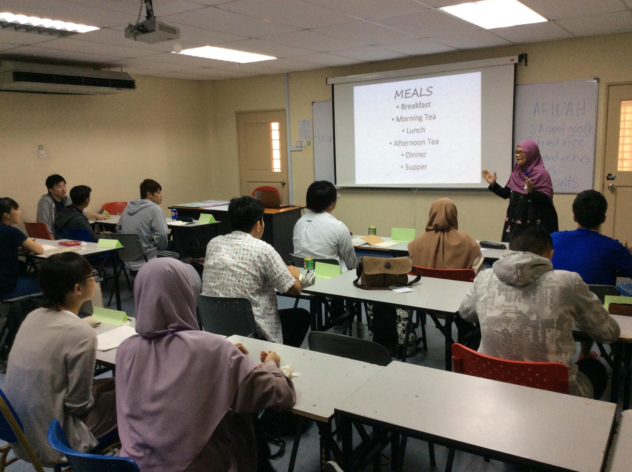 ・プログラムの主担当である英語科のアリフ先生の指導のもと、バディを務めてくれる6名のUiTMの学生さんと互いに自己紹介。バディさんは授業に同席し、食事や買物などに付き添うとともに、寮にも同宿してくれます