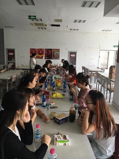 義利食品工場は1906年に設立された111年の歴史がある大規模国営工場です。この工場では見学者に様々な体験コースを提供してくれます。パン、ケーキ、プリン、チョコレート作り等々があり、文京生はパン作りコースを選びました。最初、この体験コースでパン作りをし、成型したパンを焼いている間に工場内の生産ラインや展示ホールを見学しました。展示ホールには設立当時から現在に至るまでの写真や貴重な記念の品々が並べられていました。見学終了後、焼きたてたのパンを試食し、また各自作ったパンを持ち帰ることもできて学生は大満足の企業見学でした。