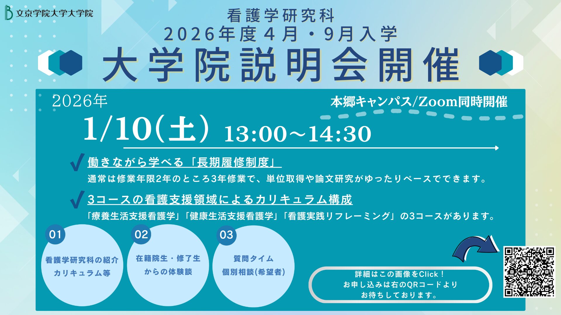 【看護学研究科】2026年1月10日(土)大学院説明会を開催します 申込受付中!