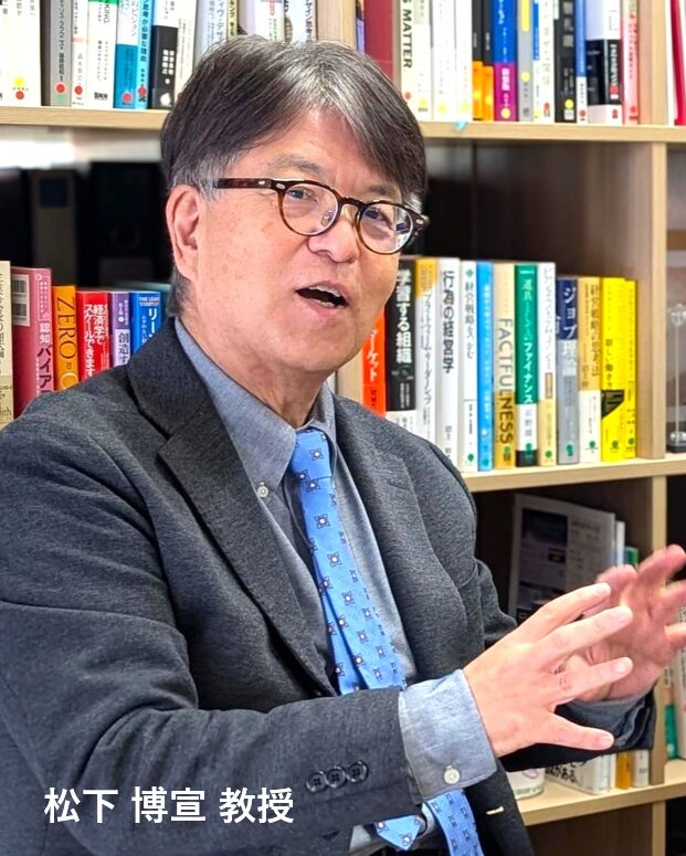 当日は、福祉医療マネジメント研究科の松下博宣特任教授と、亀川雅人研究科委員長による対談形式で進行しました。 対談の冒頭では、松下教授の最新刊を手がかりに、「ウェルビーイングとは何か」という基本的な問いが提示されました。議論は単なる個人の“幸福感”の話にとどまらず、医療職自身が生き生きと働けているかが、チーム医療や患者ケアの質、ひいては在院日数の短縮といった経営効率に直結するというデータが示され、ウェルビーイングを「組織で扱うべき経営資源」として捉え直す重要性が提起されました。