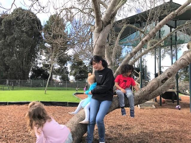 これは2−3歳児クラスの様子です。子どもも先生も、とてもフレンドリーでほんわかしている雰囲気でした。あまり言葉がいらない外遊びは、格好の仲良くなる機会とも言えます。