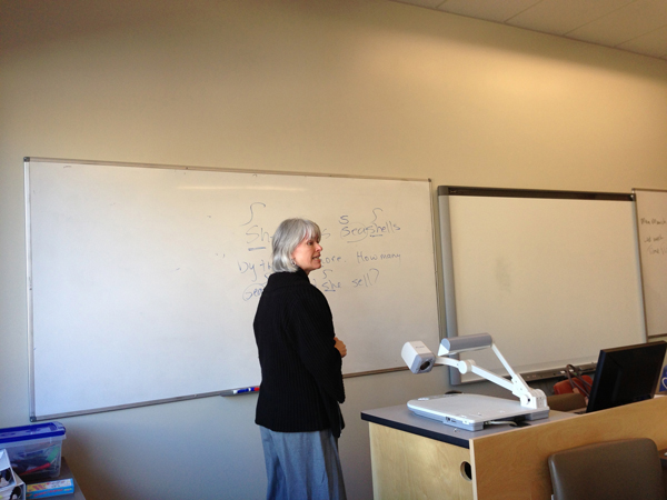さあ、人間福祉学科も朝のウォームアップです。お互いに英語で話し合って、それに該当する単語を当てていきます。