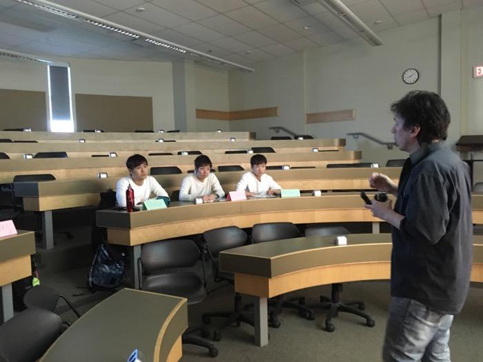 午後は、去年の11月に文京学院大学ふじみ野キャンパスまで来訪してくれたマイクの授業です。もう10年以上このプログラムにも関わってくれています。議論好きで、カナダでも学生と議論をしながら授業を進めているとのことで、「僕とお酒を飲むと(議論好きで)面倒くさいから、みんな飲みたくないだろうな。」などと冗談を言います。が、とても気さくで、いたずら心もあり、かつ教育に真摯な研究者です。今日は知覚・認知心理学のお話。