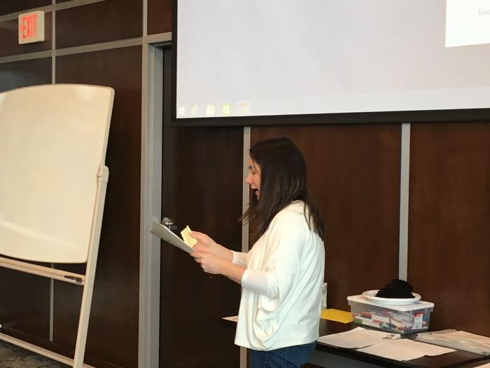 さあ、午後の心理学実験です。担当してくれるのは、カーリー。臨床心理学の学士を持つスタッフです。すでにTRUを卒業し、こうしたプログラムをサポートするメンバーの1人です。昨年は在学生として手伝ってくれました。この夏から大学院生になります。すでにとても優秀な研究者の卵、といってもいいでしょう。教員ではないのですが、実験授業体験ということで、彼女が担当します。