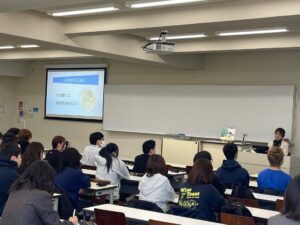 国土交通省公共交通事故被害者支援室のアドバイザーも務める美谷島様からは、北海道知床半島沖での観光船沈没事故や羽田空港地上衝突事故に関するお話もいただきました。「安全対策に正解はない。正解は存在するものではなく、安全はつくり出すもの」、「安全は目には見えないが、安全でないことは目に見える」とのお言葉に、学生達は真剣に耳を傾けていました。美谷島様は全国各地で講演活動をされ、2024年にはオランダで開催された航空機事故の犠牲者及びその家族への支援に関するシンポジウムにも登壇されました。事故から今年で41年となる現在も、伝え続けてくださることの意味、その想いを学生達が少しでも感じてくれる時間となればと考え、このような機会をいただき今年度で3年目となります。