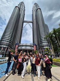 まず留学を通して学んだことは、マレーシアで信仰されているイスラム教について、身をもって体験しながら知ることができた。イスラムと言えば人々の外見の違いが印象的だ。基本は色が決まっていて、堅苦しいものかと考えていたが、実際にはふファッションとして楽しまれており、洋服店を見に行った際には様々なカラーと種類があるのだと理解を深めた。そして私は、マレー系の女性たちが着けているヒジャブを着用し体験した。日差しの強い外に出ると、顔全体に覆うヒジャブは少し日陰効果があり、想像よりも涼しく感じた。しかし一番苦労したことは、全身が隠れるように長袖長ズボンで過ごすことだ。私は日本同様、マレーシアにても半袖にズボンを履いていたが、長袖に変えた瞬間とても暑かった。マレーシアは比較的日本よりも風が涼しかったため苦労しないが、エアコンの無い室内では、ヒジャブと長袖長ズボンは大変だと分かった。また、肌の出ている面が顔のみだったため、汗が顔からしか出せず化粧をする女性は大変だととても分かった。一緒に行動してくれたバディも大変そうだった。