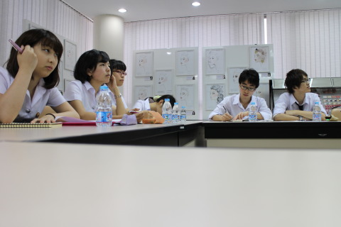 その後、20年以上前にタマサート大学の仏文科を卒業したという現地スタッフより、日本企業で働くこと、カネボウで働くこと、豊かな人生を送るためには、など幅広いトピックで英語による講義がありました。このスタッフさんは昨年のプログラムでもご対応頂いた方です。彼女はロレアル、資生堂などでの勤務経験があり、英語の他、フランス語、日本語、韓国語、そしてもちろんタイ語を話します。