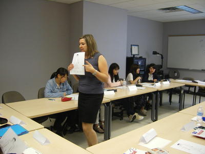 留学体験談 (保)海外短期フィールドワーク(カナダコース)報告1 保健医療技術学部の学生を対象とした海外短期フィールドワーク(カナダコース)に今年は15名の学生が参加。引率の藤谷教授とともにトロントに近いセント・キャサリンズ市にあるブロック大学(Brock University)に到着し、8月8日から研修を開始しています。初日は入学手続き、英語クラスのクラス分けテスト、キャンパスツアー等の後、ブロック大学の学生との交流会がありました。 オリエンテーションで手続き中 授業の様子 カンバセーションカフェ