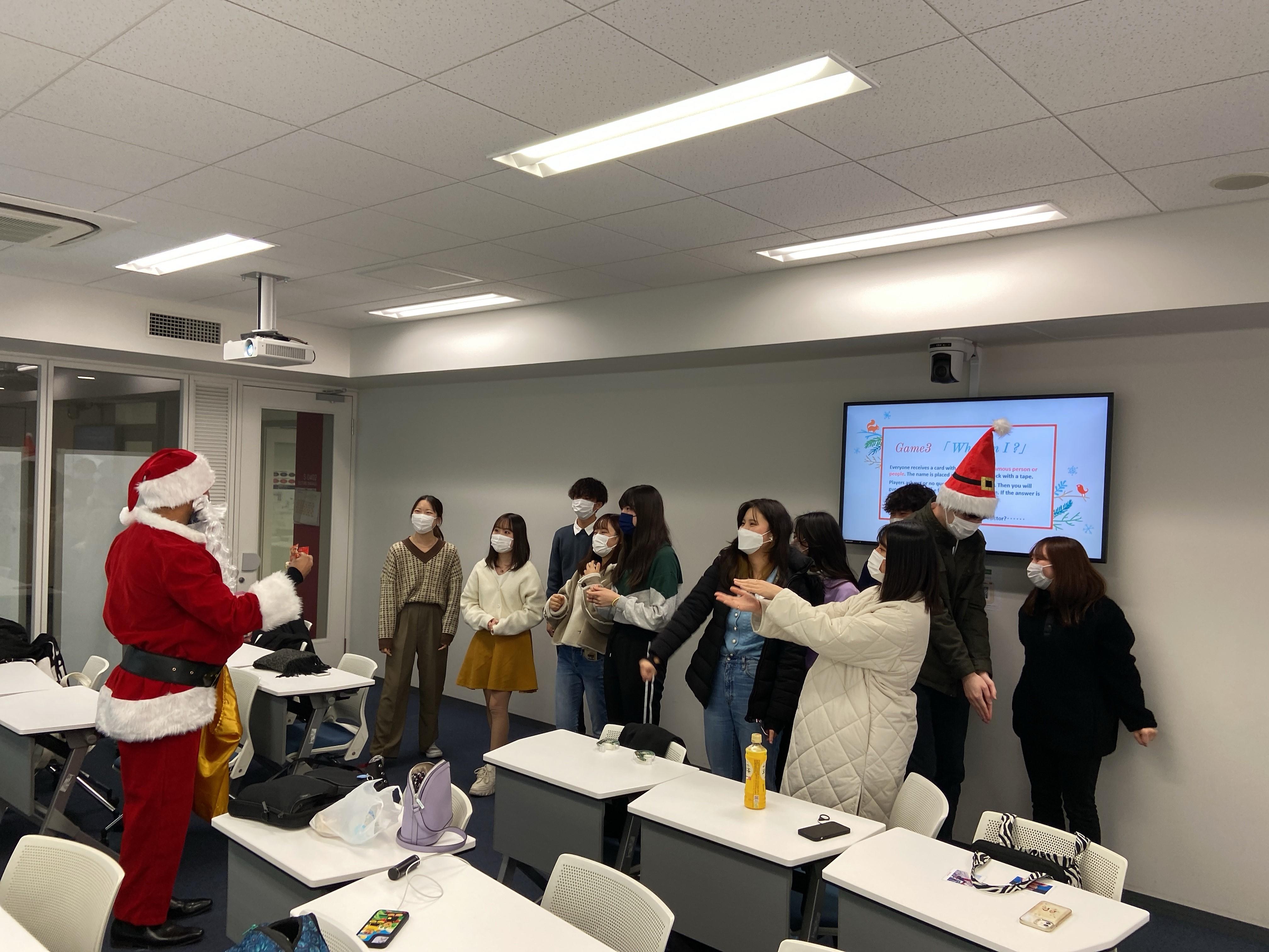 ニュース 12/22・23 クリスマス英語レッスン(ふじみ野キャンパス・本郷キャンパス) 2021.12.23 12月22日・23日にアメリカ人チューターのRJが『Xmas English Lesson』を行いました。本郷キャンパスではスペシャルゲストとして、チャットパートナーのSamさんにも参加して頂きました。クリスマスクイズやゲームで大いに盛り上がりましたよ。 ■□■□■□■□ 12/22 ふじみ野キャンパス ■□■□■□■□ ↑どデカサンタも出現しました! ↑和気あいあいのレッスン ■□■□■□■□ 12/23 本郷キャンパス ■□■□■□■□■□■ ↑本郷はダブルサンタでお届け!↓ ↑英語ゲームで盛り上がりました! ↑レッスンの最後にはサンタさんからお菓子のプレゼント ↑みなさんご参加ありがとうございました~!2022年も色々なレッスンイベントを企画するのでご参加下さいね。 戻る