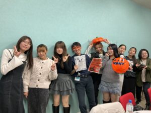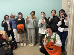 8月からチューターとして来てくれている、アメリカ出身のクレアと一緒にハロウィンパーティーを開催!本場のハロウィンの話を聞いたり、ゲームで盛り上がったりと、とてもにぎやかな時間になりました♪