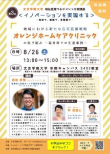 福祉医療マネジメント公開講座「イノベーションを実現する~地域で、組織で、多職種で~」 第3回「地域における新たな在宅医療戦略 オレンジホームケアクリニックの取り組み ~福井県での先進事例~」開催