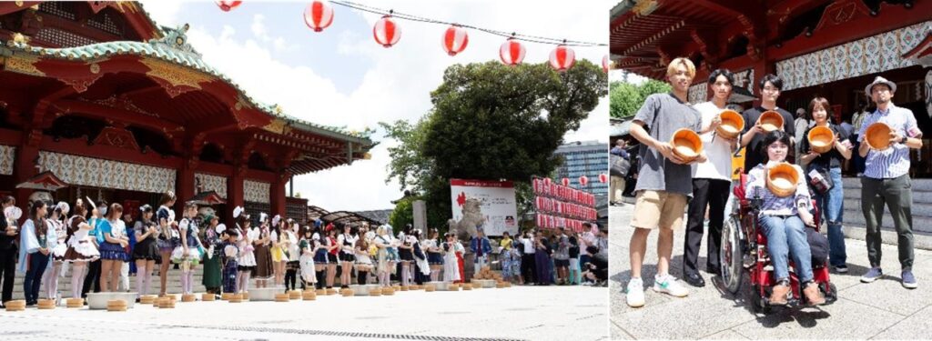 文京学院大学(学長:福井勉)は、2023年8月11日、神田明神にて開催されたNPO法人リコリタ(秋葉原で社会貢献を行う市民の会)主催の「うち水っコ大集合! 2023」に、学生5名が現地のアテンド・警備などのボランティア活動を実施したことをお知らせいたします。参加したのは人間学部コミュニケーション社会学科3年生5名で、学生達は都市型社会問題について学びながら、地域社会との関わり方を学習する“まちラボプロジェクト実習”の一環として「秋葉原文化の創造的継承」をテーマに研究を実施しています。