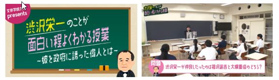 渋沢栄一と歴史上の有名な偉人達との意外な関係性に初めて焦点をあてた、クイズ形式で展開される動画となっています。渋沢栄一の生涯や考え方、偉業をこれまでにない視点から解説しています。生徒役には、文京学院大学女子中学校 高等学校の中学3年生から高校3年生までの7名が登場します。生徒たちの鋭い考察や独自の視点からでる個性豊かな発言にもご注目ください。