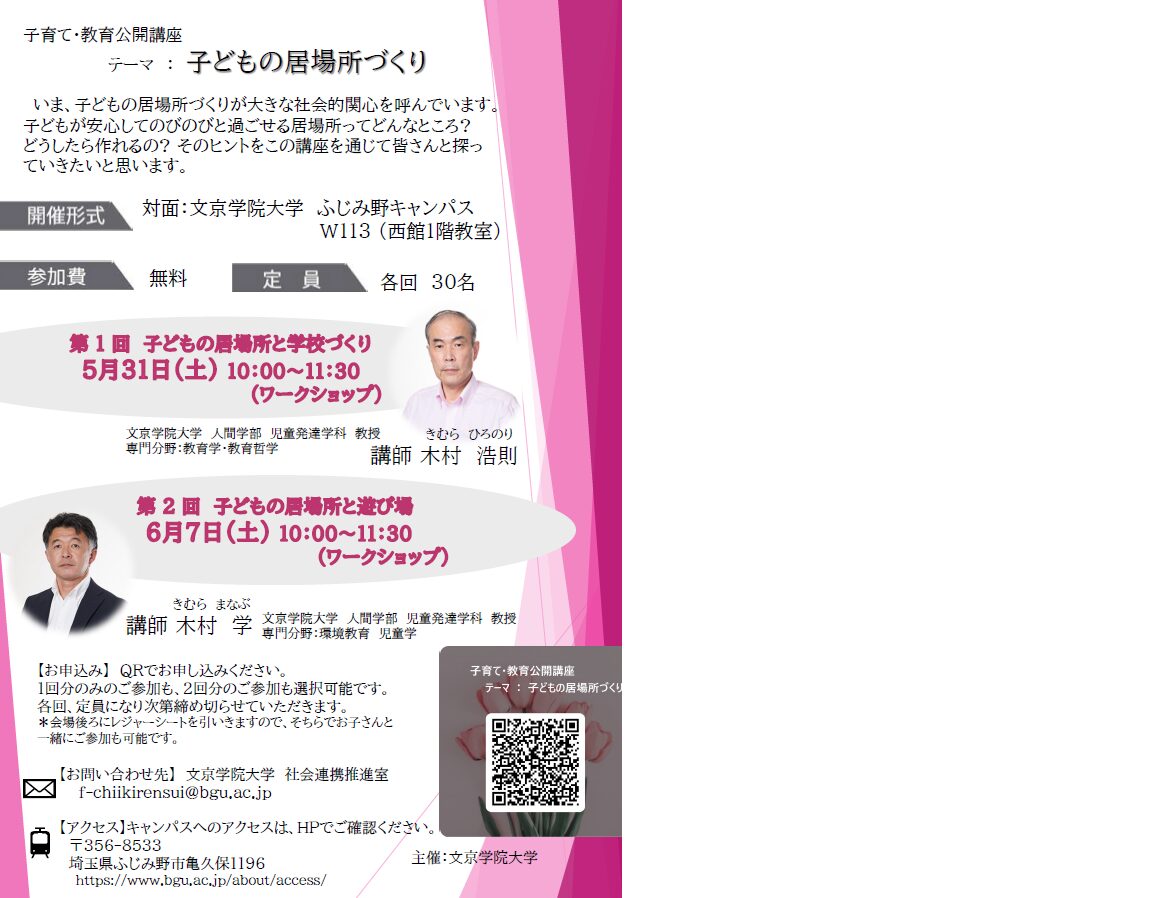 「子どもの居場所づくり」をキーワードに、5月31日(土)/6月7日(土)公開講座をふじみ野キャンパスにて開催します。