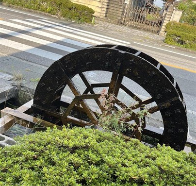 白沢は道沿いに用水路が流れており、ところどころに水車がある、非常に涼しげな街並みでした。