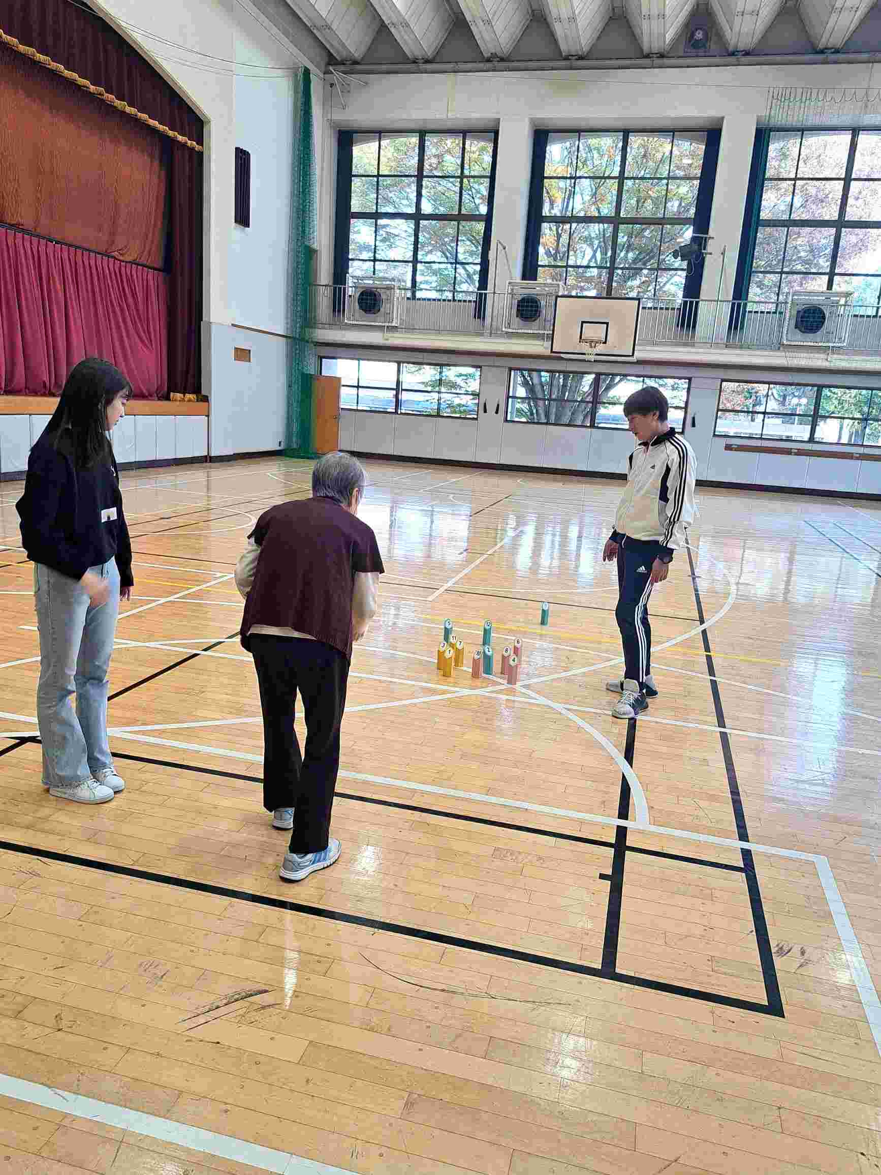 青木先生からは「モルックシリーズの1回目は4名の参加、このうち3名は2歳児をつれた親子でした。この夫婦は2013年の卒業生で、たまたま講座のチラシをみて参加してくれました。大学・教員としてこのつながりはうれしいことです。モルック自体はゲームを中心にした内容でチーム戦を行いました。参加者同士が初めて顔を合わせる関係でも和やかに時間を過ごせるのがユニバーサルスポーツの一番の特徴です。今日は小さな勇者と参加者の笑顔に助けられました。」とコメントをいただいております。
