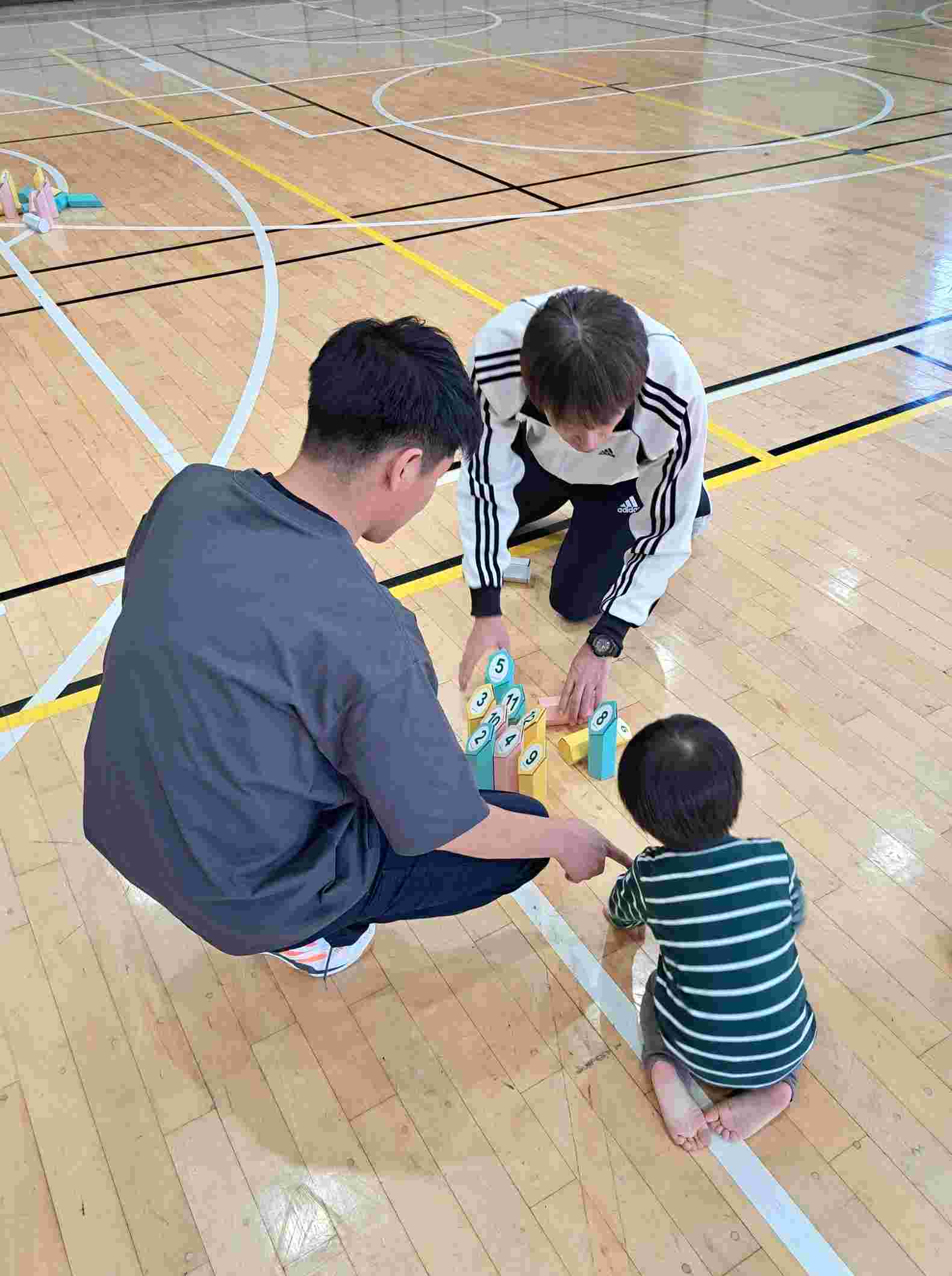 青木先生からは「モルックシリーズの1回目は4名の参加、このうち3名は2歳児をつれた親子でした。この夫婦は2013年の卒業生で、たまたま講座のチラシをみて参加してくれました。大学・教員としてこのつながりはうれしいことです。モルック自体はゲームを中心にした内容でチーム戦を行いました。参加者同士が初めて顔を合わせる関係でも和やかに時間を過ごせるのがユニバーサルスポーツの一番の特徴です。今日は小さな勇者と参加者の笑顔に助けられました。」とコメントをいただいております。