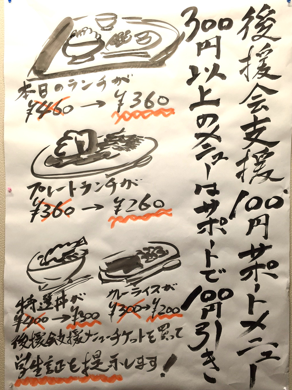 学生証を掲示することで、1品300円以上のメニューが100円引きになります!