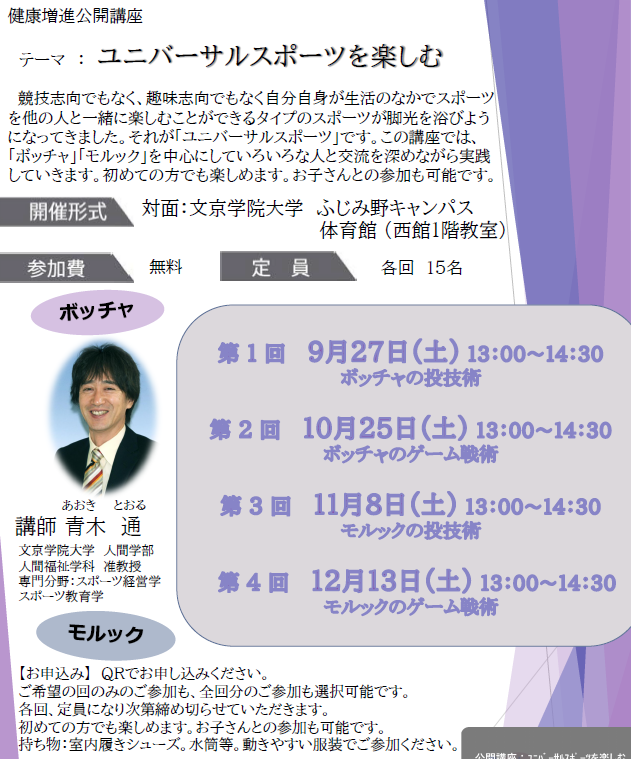◆健康増進公開講座「ユニバーサルスポーツを楽しむ」第1回~第4回